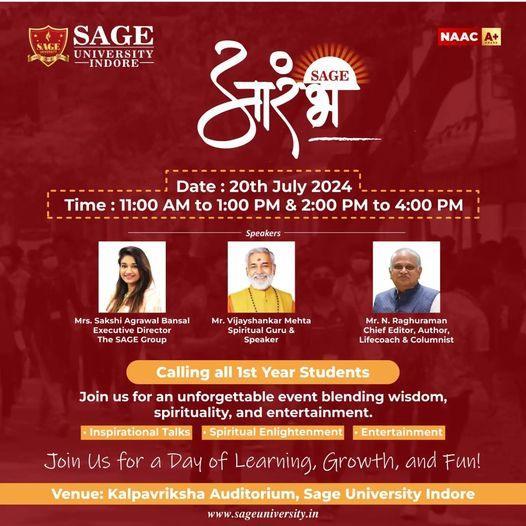 SAGE University Indore has achieved the prestigious NAAC A+ accreditation, signifying excellence in education quality. It's also noteworthy for being the youngest private university in Indore, Madhya Pradesh. This reflects its commitment to providing top-notch education and creating opportunities for students in the region.
